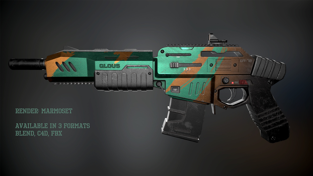 3d assault sci-fi rifle Glous br-78 modeled in blender 3d and texture Substance Painter.